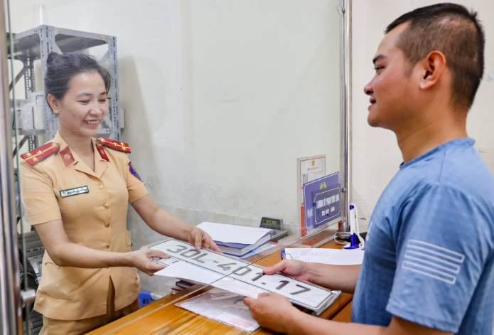 Sau khi trình báo, bạn cần đến Phòng Cảnh sát giao thông nơi xe đăng ký để làm thủ tục xin cấp lại biển số xe. Hồ sơ bao gồm: